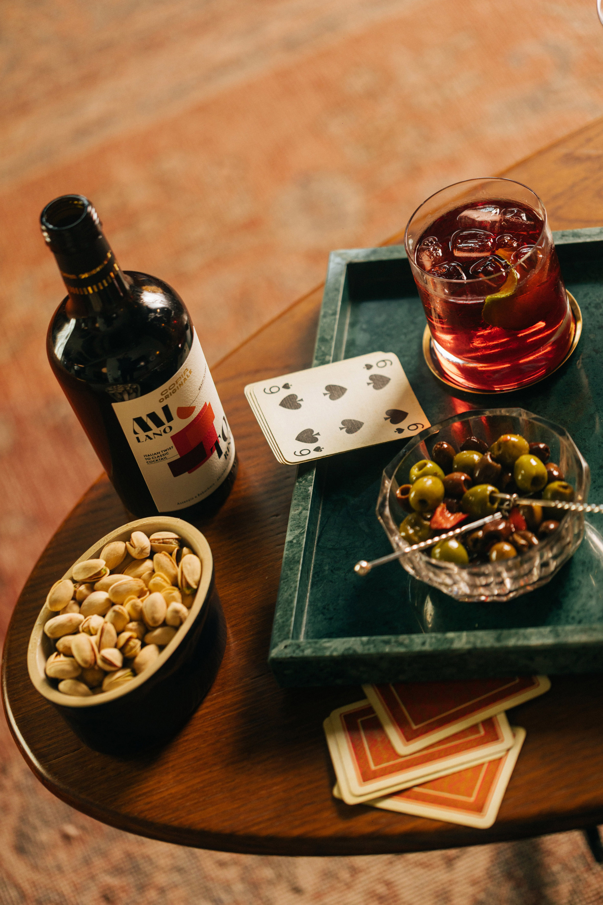 Cocktailul istoric care reunește vermut roșu și bitter: elegant, persistent cu gust si aromă inconfundabile.